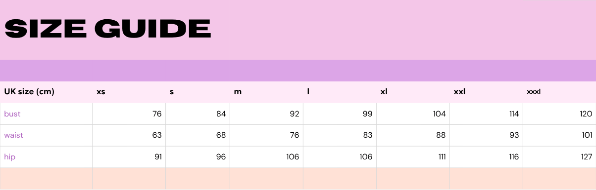 Each product has its own specific size guide. Please refer to said guide before purchase. For extra bust support you can size down with this product. Any questions about sizing do not hesitate to get in touch.