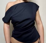 Off-shoulder top featuring ruched side detailing, a concealed zip fastening on the right side, and an adjustable bow at the back to cinch the waist for a flattering fit.